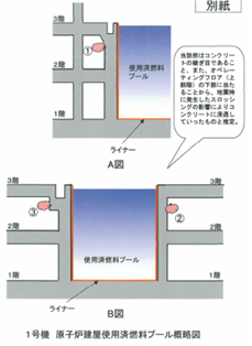 今後、現在実施中のひび割れ調査など点検結果と照らし合わせ、建屋の健全性を確認する予定。 |
