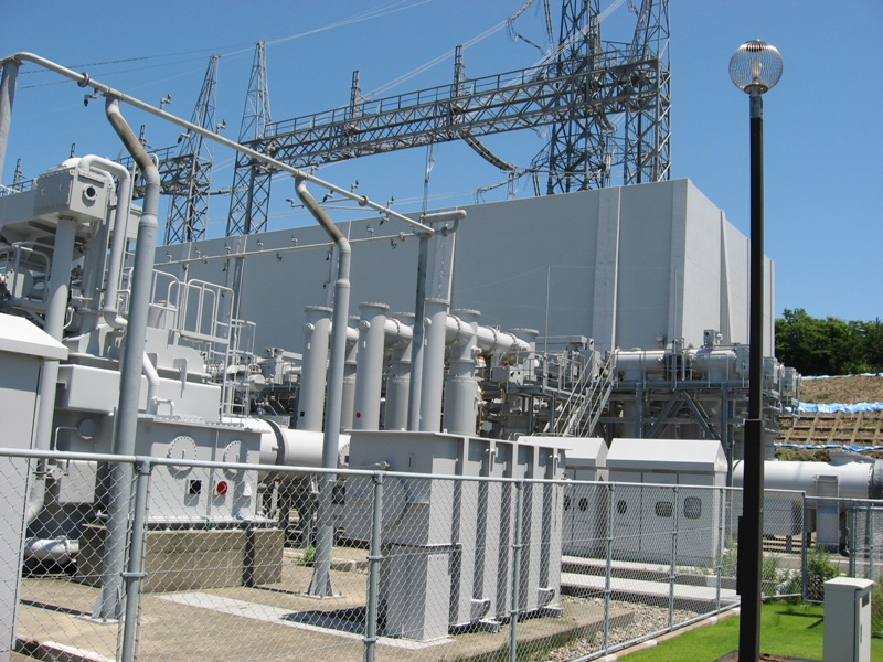 開閉所の状況(送電線からの電気を受電、各プラントに供給)