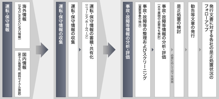 国内外の原子力施設に関する事故・故障情報等を収集し、事業者間で共有すべき情報を抽出するとともに、必要に応じ、追加調査・検討した内容を含め、各事業者に情報提供しています。