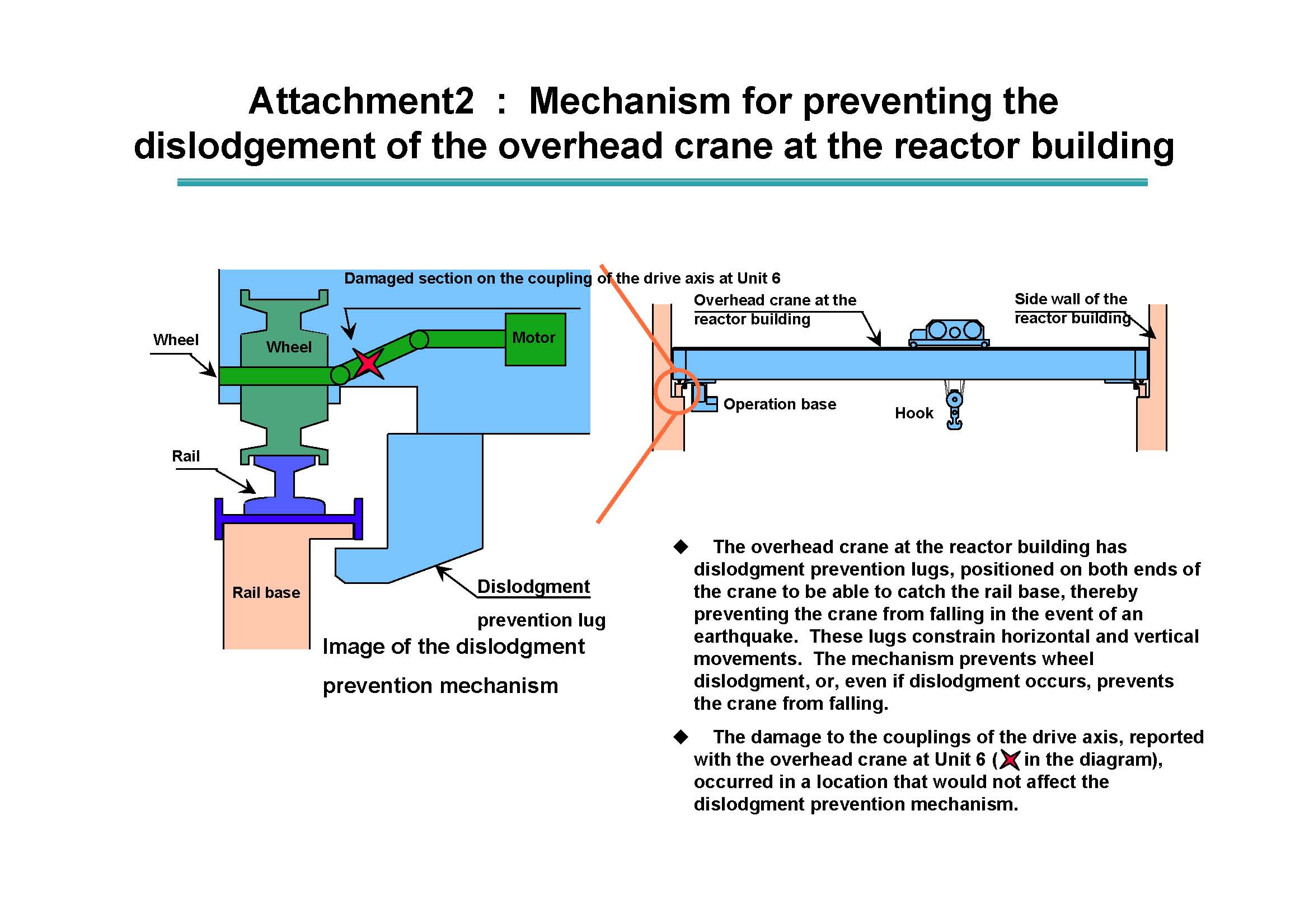 The table below shows the observation figures recorded on the lowest floor of each Unit’s reactor building (See Attachment 1), and design values for the same locations.The east-west component at Unit 1 registered the maximum acceleration of 680 gal.At Unit 2, the maximum acceleration recorded for the east-west component (observation figure: 606 gal) was 3.6 times the value anticipated in the design stage (design value: 167 gal). |