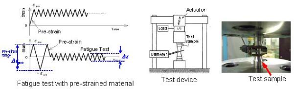The results showed that typical materials such as stainless steel and low alloy steel, pre-strained at approx. 8%, had substantial margin in fatigue strength against the current Design Fatigue Curve, pointing to minimal effects from pre-strain. |
