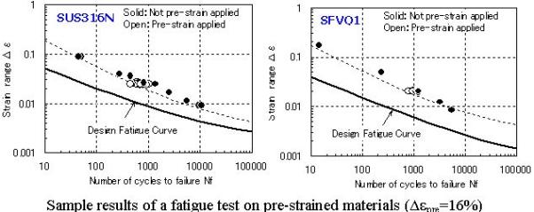 When a component with no visible deformation is found to have small plastic deformations, the impact of fatigue must be considered.When exposed to a severe load from an earthquake, etc., a material generally hardens, with the level of high-cycle fatigue strength increasing.However, the level of low-cycle fatigue strength may decrease due to the effect of the excessive load.For this reason, the Committee examined the low-cycle fatigue strength of pre-strained materials, applied with load that simulates plastic deformation caused by seismic load.