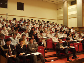 The lecturer drew on his own experiences in outlining concrete examples of crisis management at nuclear power stations. He noted that the basis for crisis management during an accident or incident at a nuclear power facility is the prompt notification of management, who should be positioned to quickly make socially responsible decisions on policy matters related to immediate countermeasures and the prevention of problem reoccurrence.