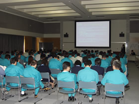 The lecturer introduced efforts to improve communication such as "'Why not? activities' through Meister Patrol," "Use of 'Question Sheet' activities," and "Strategic Training Map" for the prevention of human error. He also talked about detailed examples of safety and quality assurance activities now being carried out by Mitsubishi Heavy Industries.