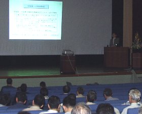 At the beginning of the Presentation, Mr. Tanaka, Director general of Tokai Research Establishment, gave an address and said "The Tokai Research Establishment was subjected to Peer Review in September last year and received a favorable evaluation. However, I do not think it is satisfactory to have been favorably evaluated regarding safety. We would like to reconfirm safety through this Safety Caravan." |