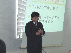 At the beginning of the Presentation, Mr. Kokaji, General Manager of Mihama Nuclear Power Station Office, gave an address and said he considered "compliance and creating a workplace with a good climate was extremely important. Today, we have Dr. Fudano from the Kanazawa Institute of Technology to give a lecture, and since we are fortunate enough to have this excellent opportunity to exchange opinions, I want to make this a fruitful Caravan in considering 'What I as an individual should do.'"