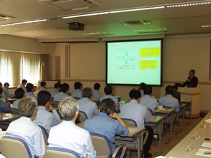During the lecture, he introduced domestic and overseas successful and unsuccessful compliance cases and TEPCO' s efforts for improving the corporate culture stemmed from the maintenance problem in nuclear power plants, and also presented human characteristics that impair communication through a video focusing on medical accidents that resulted from communication errors.