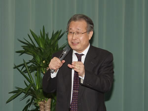 After the salutation, JANTI President Michio Ishikawa gave a speech entitled "Top Leadership Seen in Chinese History" to demonstrate the functions of leadership in the flow of history, using the examples of the first Qin Emperor's pressing forward with the system of counties and provinces and the construction of the Great Wall of China, and Jin Ouen .