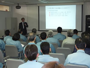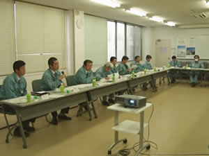 The presentation began with a salutation from Mr. Yoshiki Miyajima, Representing Director and President. "As of the end of March this year, eight and a half years have passed since the accident. It is unfortunate that the local residents whose support and understanding the plant had enjoyed from the time operations began up until the time of the accident lost their trust in us as a result of the mishap. As a result of our reflections upon the grave accident in which we not only lost two of our colleagues but also caused a disturbance to the neighborhood, we have established the action guidelines of 'absolutely safe and absolutely no accidents' and 'cherish the fundamentals and abide by the fundamentals.' Since the accident up to the present, there are about 30 employees still assigned to tasks related to dealing with the after-effects of the accident. In dealing with these after-effects, the work has been carried out keeping in mind the frankness of accepting responsibility while faithfully abiding by the fundamentals. Under ordinary circumstances, we seldom have the opportunity for stimulus input from the outside, and so we welcome this opportunity for useful stimulus with the hope that it will be helpful in safety activities hereafter."