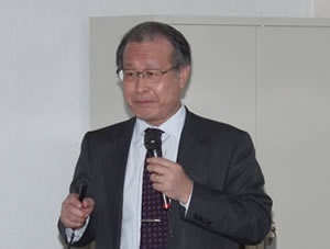 After the salutation, Professor emeritus Dr. Masaharu Kitamura, Associate Member of the Tohoku University New Industry Creation Hatchery Center gave a lecture entitled "Considering the Relationship between Nuclear Power and Society -- Reviewing the Connections among the Individual, Business Enterprises, and Society."