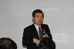 Mr. Junji Nagashima, General Manager of the Nuclear Power Construction Department, gave the opening statement: "As an organization, we are able to implement large projects properly by tactfully exercising the strengths of each and every individual. That is to say, unless we make one plus one equal more than two, I believe that we will not be able to accomplish good work. To that end, I feel it is important that the ideas put forth by each individual be translated into practice and adequately shared throughout the whole organization. Today, I hope that Professor Yoshida will discuss something along those lines.