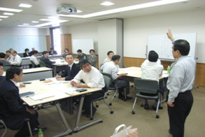 Based on a request from the Electric Power Development Co., Ltd., group work was conducted during the safety information exchange meetings before and after lunch. Approximately 20 core leaders in the Nuclear Power Division participated in these sessions under the guidance of Professor Michio Yoshida of the Center for Educational Research and School Development, Faculty of Education, Kumamoto University.
