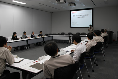 Mr.Satoshi Fuchino, Field Engineering Manager of Toshiba’s Isogo Nuclear Engineering Center, gave a presentation on Toshiba’s initiative to enhance on-site capability. Also, Mr.Jun Hamada of the Japan Nuclear Technology Institute’s Nuclear Safety Network Division gave a presentation containing ideas for how to go about enhancing on-site capability. Following the presentations, the attendees exchanged ideas and opinions about this initiative and other topics. |