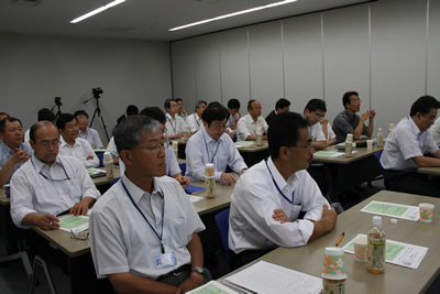 Katsuya Nakamoto, manager of Kobe Steel’s Quality Assurance Office in the Natural Resources and Engineering Business Division’s Safety, Quality, and Environmental Management Department, gave a presentation on “Engineering case studies and efforts against non-conformance.” Jun Hamada, from of the Japan Nuclear Technology Institute’s Nuclear Safety Network Division, gave a presentation on “Safety culture and human errors.” After the presentations, the participants exchanged comments and ideas on these and other topics. |