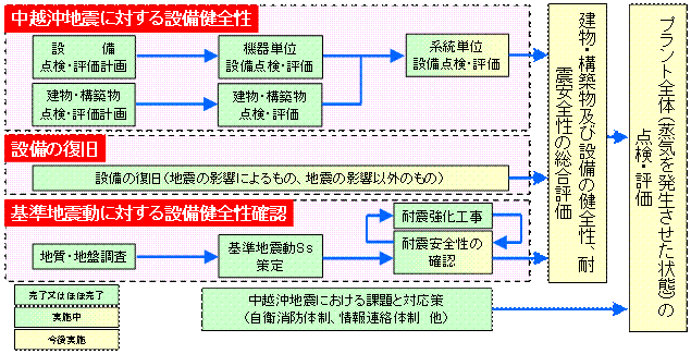東京電力ではプラント全体の健全性評価を、以下のフローのとおり着実に作業を進め、随時その結果を報告している。