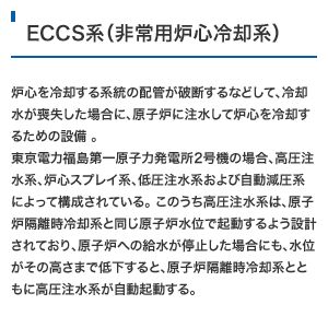 原子炉の水位に応じて原子炉隔離時冷却系やECCS系(非常用炉心冷却系)が自動起動して原子炉に給水します。今回の福島第一原子力発電所2号機の場合は、運転員が定められた手順に従って原子炉隔離時冷却系を手動起動して原子炉の水位が確保されました。このため、原子炉隔離時冷却系やECCS系(非常用炉心冷却系)が自動起動することはありませんでした。この運転員の対応は常日頃の訓練の成果の現れと言えます。